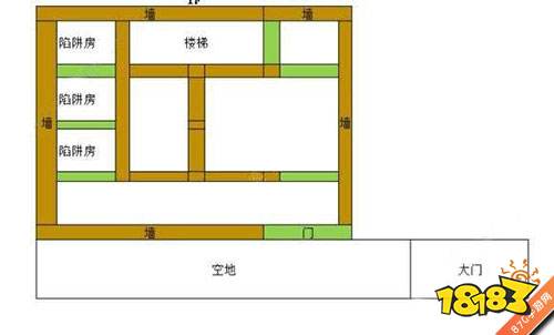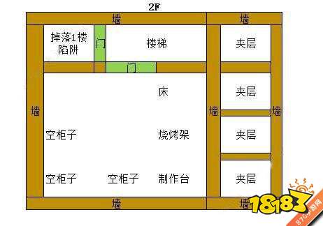 房子为4级家乡,占地5*6,楼层高度为3层。房子规划上考虑到了迷宫、圈套、防拆地板,总共3个圈套房,4处圈套掉落点。